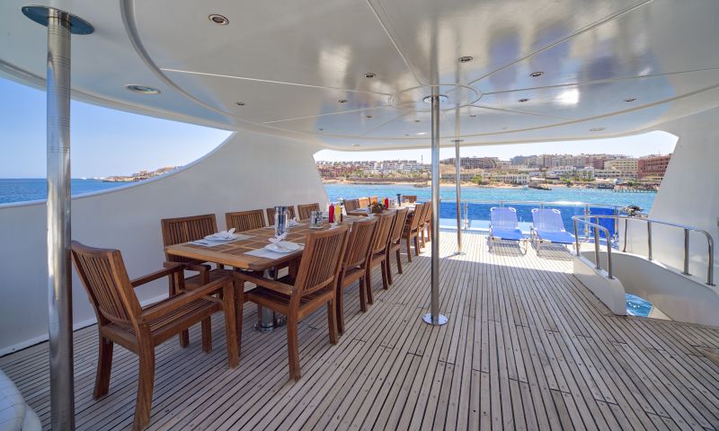 Mit 42 Metern Länge und 8,5 Metern Breite befährt die Seawolf Dominator als neuestes Mitglied der Seawolf Flotte das Rote Meer. Modernste technische Ausrüstung sowie eine luxuriöse Ausstattung bieten ein besonderes Taucherlebnis. Die beiden Motoren mit jeweils 1050 PS bringen Euch in kürzester Zeit zu grandiosen Tauchplätzen. Konzipiert wurde die Seawolf Dominator als hochseetaugliches Safari-Schiff. Bei der Planung wurde besonders auf die helle, geräumige und moderne Einrichtung der Kabinen, Suiten und Entspannungszonen geachtet, so dass Taucher und Nicht-Taucher einen relaxten und erlebnisreichen Urlaub verbringen können. Zwei separate Bäder mit Dusche und WC, der gemütliche Salon mit TV, DVD, Video, Musikanlage, zwei Sonnendecks, ein geräumiges Tauchdeck sowie Wifi an Bord runden das Angebot ab. Wlan steht kostenfrei kostenfrei zur Verfügung, aber der Empfang ist nicht gewährleistet.